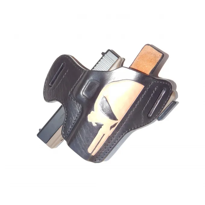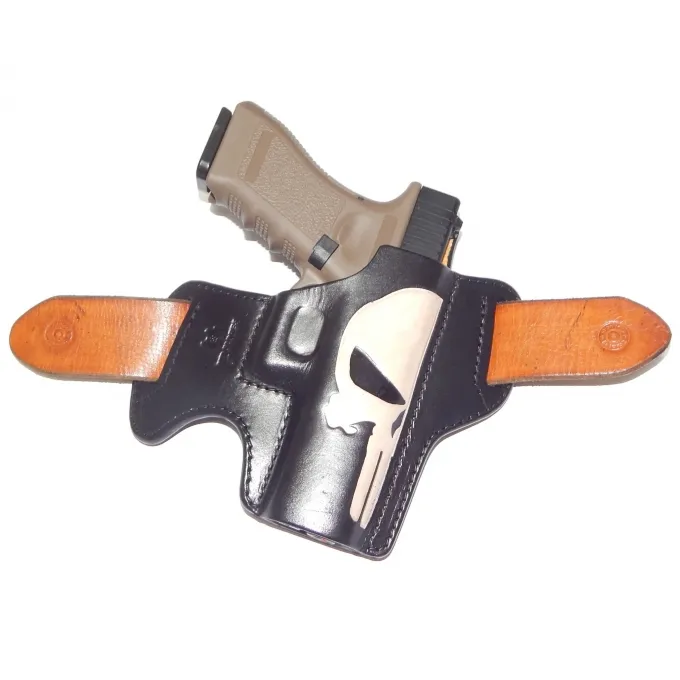 Coldre feito sob medida, com 2 placas de couro coladas e costuras para encaixe sob medida e retenção natural das armas a que se destina.
