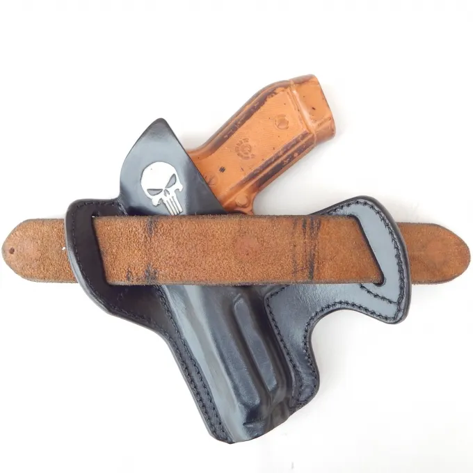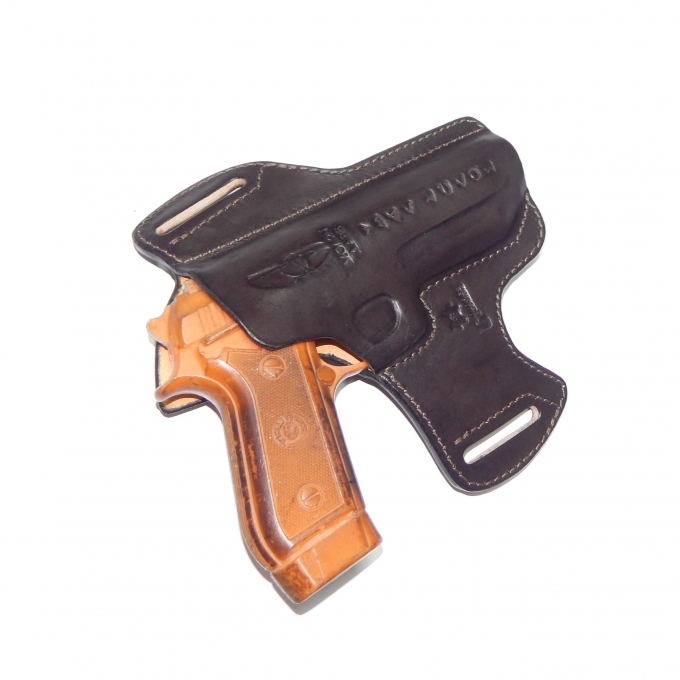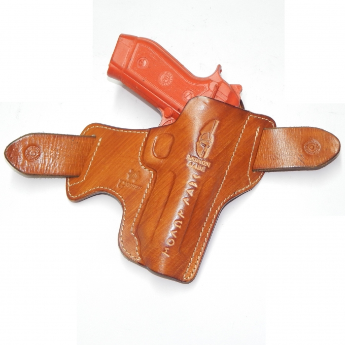 Coldre feito sob medida, com 2 placas de couro coladas e costuras para encaixe sob medida e retenção natural das armas a que se destina.